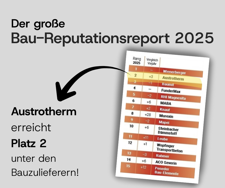 Der Erfolg im Bau-Reputationsreport 2025 ist für Austrotherm Bestätigung und Ansporn zugleich.